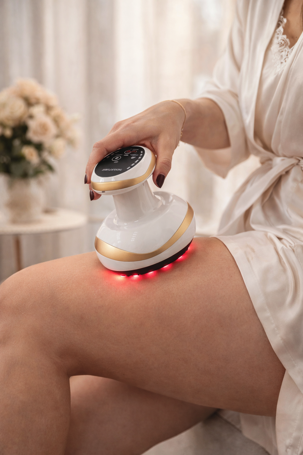 Ved at kombinere varme, vakuum og massage stimuleres blodcirkulationen og bindevævet, hvilket bidrager til en mere jævn hud og mindre synlig appelsinhud ved regelmæssig brug.